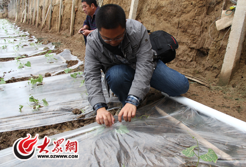 記者學(xué)著種植戶,鏟來(lái)泥土蓋住保溫膜邊緣