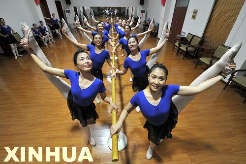 新華網山東頻道9月14日電 在濟南市老年大學藝術團里有一支老年芭蕾舞隊,20名隊員中最高年齡超過65歲,平均年齡55歲。隊員中很多人沒有專業舞蹈基礎,可是自幼酷愛芭蕾,夢想有一天也能穿上舞鞋,立起足尖在舞臺上翩翩起舞。但對于年過半百沒有任何舞蹈基礎的隊員來說,學芭蕾確實是件很艱難的事。57歲的帶隊人冉玉潔專門制訂了一套針對中老年人的芭蕾舞學習計劃,并帶領隊員們練形體、基本功,一練就是整整兩年。