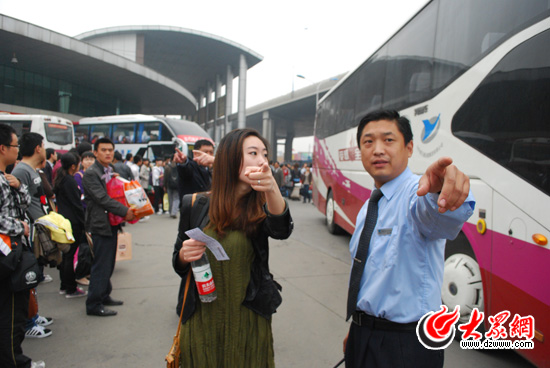 [提要] “十一”黃金周的第一天,早上6點,大眾網記者來到號稱“中華第一站”的濟南長途汽車總站,因為工作超級繁忙,大眾網記者只能一路小跑,“追”著采訪調度科副科長張傳滿。