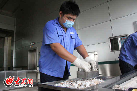 7月18日上午10點半,大眾網記者來到濟南市殯儀館,火化車間的工作人員小丁準備去食堂吃午飯。“我們火化車間實行24小時值班制度,但按照濟南的習俗,逝者家屬一般都選擇在12點之后對逝者遺體進行火化,每天中午的12點到下午3點是火化高峰期,所以我們火化車間的值班工作人員都是輪流吃飯,保證遺體能夠隨時進行火化。”小丁告訴大眾網記者。