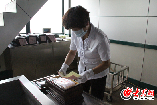 “咱們得向前看嘛,現在社會畢竟還是在進步的嘛!”生于1963年的業務科董科長安慰小丁說。董科長告訴大眾網記者,因為她的父親就是濟南市殯儀館的老職工,所以小時候她也挨過別人的白眼。“但我很幸運,有自己的一群朋友,現在大家出去聚的時候都愿意叫上我,說沒有我不熱鬧!”董科長這樣說。
