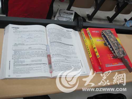 怕打擾到小白復習,記者不再看她在做什么題目,安靜的在一邊陪著她。記者注意到,小白每做一道題目,都用左手把題目下面的講解蓋起來,做完一道題目,再對著講解仔細的看一遍,核對自己做的正確與否。由于看書看的太過投入,記者又不好打斷她,結果小白嘴里說的“先做幾個題”竟是一做做到了下午四點鐘。小白突然想起來記者還在身邊,不好意思的趕緊跟記者來到教學樓外介紹了一下情況。