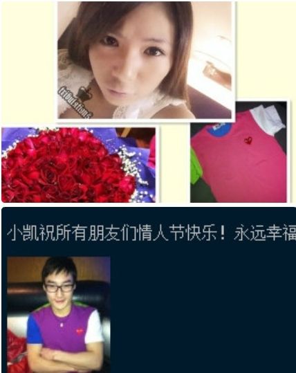 情人節,何姿發了一條甜蜜微博,除了她的大頭照,還有一捧漂亮的玫瑰和一件川久保玲的衣服,而秦凱在情人節當天21點發了一條微博:小凱祝所有朋友們情人節快樂!永遠幸福!配圖上秦凱穿的就是何姿那件衣服,同品牌只不過同款不同色。很多網友在看到這樣的照片后表示,這就是情侶裝啊,希望他們永遠幸福!