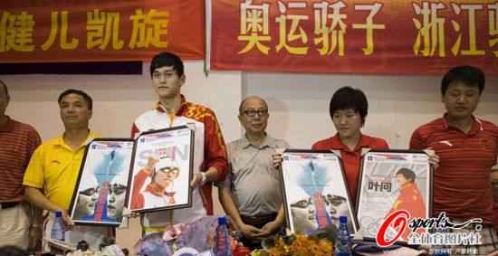 [提要] 從倫敦奧運會凱旋歸來,分別摘下了兩枚金牌的2位游泳健兒孫楊(微博)和葉詩文(微博),在北京短暫的停留之后,已于北京時間的8月8日趕回了老家杭州。好事多磨,8月8日晚間大約22點,孫楊、葉詩文等一行人終于順利抵達杭州,在杭州家鄉父老的花團錦簇、一片歡呼聲的迎接禮之后,孫楊等奧運健兒迅速接受了當地媒體的采訪。