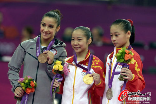 這樣兩位中國選手鄧琳琳和眭祿就以15.600分和15.500分包攬平衡木項目的金銀牌,在同分的情況下萊斯曼憑借更高的完成分力壓波諾爾摘銅。