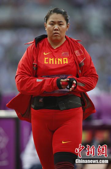 當地時間8月10日,2012年倫敦奧運會女子鏈球決賽,中國選手張文秀投出76.34米的成績,排在第三位。賽后德國隊選手海德勒申訴成功,成績反超張文秀,張文秀最終獲得第四名無緣獎牌。圖為張文秀。記者 盛佳鵬 攝