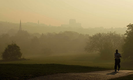倫敦市民在霧霾天氣中慢跑
