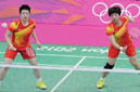 倫敦奧運會羽毛球女子雙打賽場上,排名世界第一的中國選手于洋和王曉理在A組最后一場比賽中,...