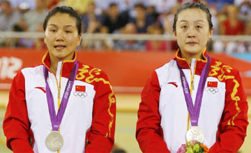 2012年倫敦奧運會自行車比賽繼續進行,場地自行車女子團體競速賽中,中國隊因為犯規失去了金...
