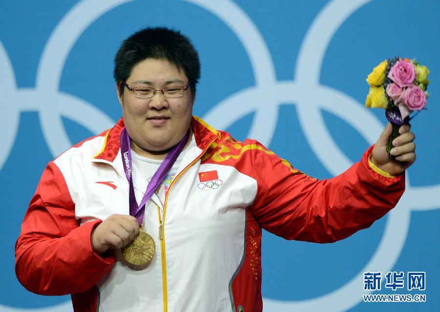 8月5日,在2012年倫敦奧運會舉重女子75公斤以上級決賽中,中國選手周璐璐以333公斤的總成績獲得冠軍,并打破世界紀錄。圖為2012年8月5日,獲得冠軍的周璐璐在倫敦奧運會舉重女子75公斤以上級頒獎儀式上。 新華社記者楊宗友攝