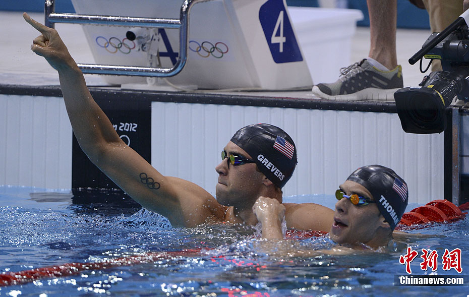 當(dāng)?shù)貢r間7月30日,倫敦奧運男子100米仰泳美國選手格雷弗奪冠。記者 廖攀 攝