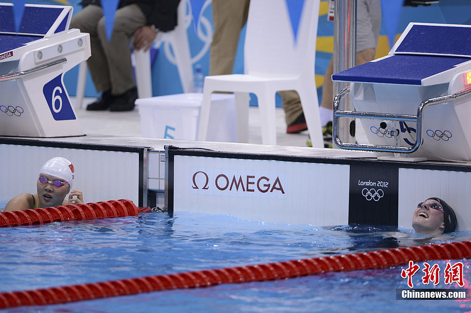 當(dāng)?shù)貢r間7月30日,倫敦奧運女子100米仰泳決賽中國選手趙菁發(fā)揮失常與金牌無緣,在相鄰泳道的冠軍面前,趙菁還目不轉(zhuǎn)睛的望著成績表。記者 廖攀 攝