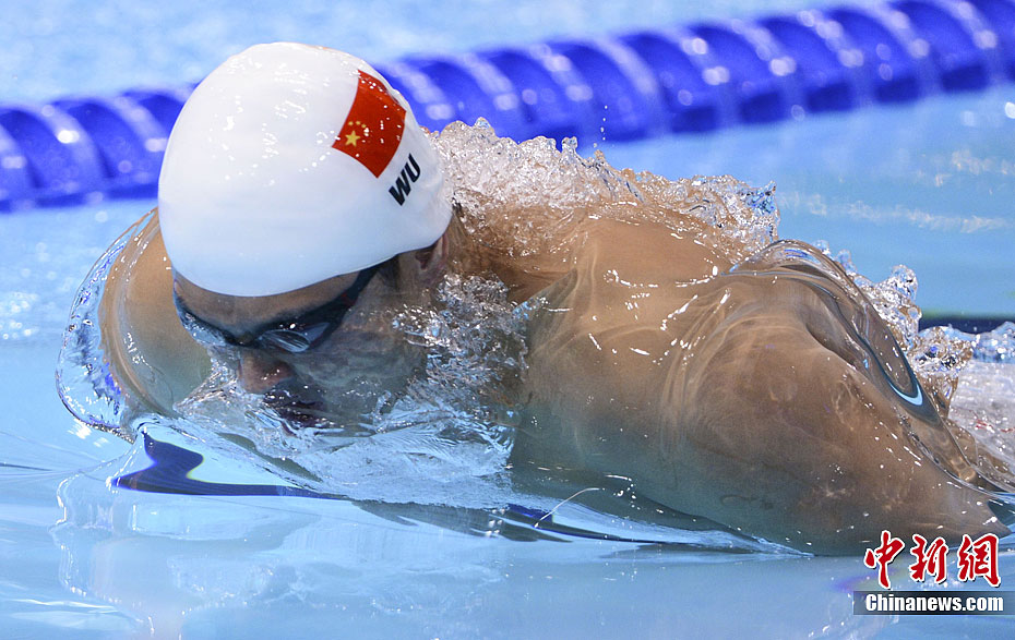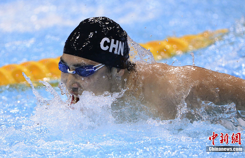 當(dāng)?shù)貢r間7月30日,在倫敦奧運會男子200米蝶泳半決賽的爭奪中,中國選手吳鵬以1:55:65的成績無緣決賽。記者 廖攀 攝