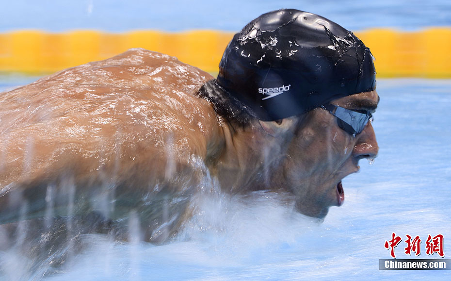 當(dāng)?shù)貢r間7月30日,倫敦奧運男子200米蝶泳半決賽中美國名將菲爾普斯排名第四挺進(jìn)決賽。記者 廖攀 攝