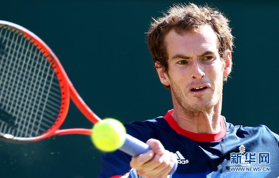 8月5日,英國選手默里在比賽中回球。當日,在2012倫敦奧運會網球男子單打決賽中,英國選手默里以3比0戰勝瑞士選手費德勒,獲得冠軍。新華社記者陳建力攝