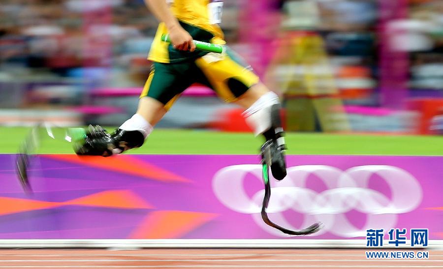 8月10日,“刀鋒戰(zhàn)士”南非選手皮斯托瑞斯在比賽中。當日,在2012年倫敦奧運會田徑男子4X400米決賽中,南非隊以3分03秒46的成績獲得第八名。新華社記者殷剛攝