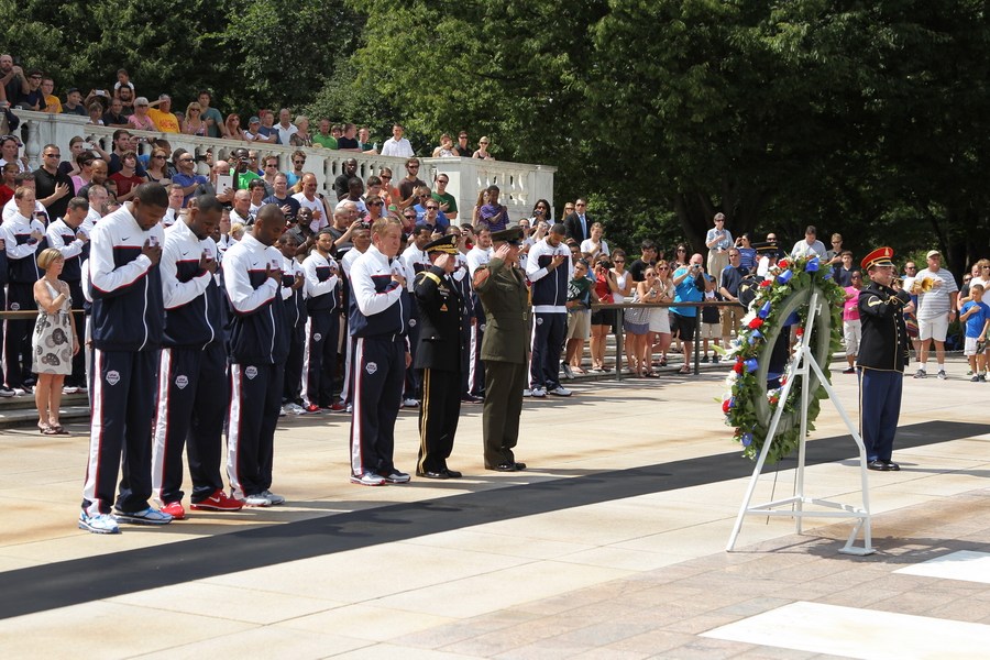 北京時間2012年7月16日,美國男籃繼續備戰倫敦奧運會,訓練結束后,美國男籃訪問了阿靈頓國家公墓,科比代表全隊向無名士兵獻花。