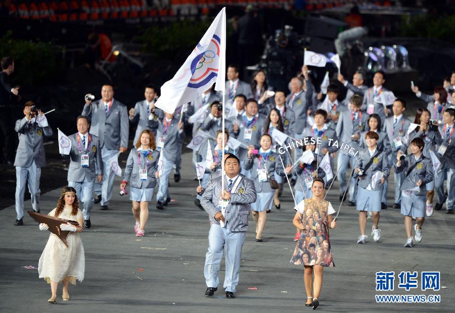 7月27日,第三十屆夏季奧林匹克運動會開幕式在倫敦奧林匹克公園主體育場“倫敦碗”舉行。這是中華臺北代表團入場。 新華社記者楊磊攝