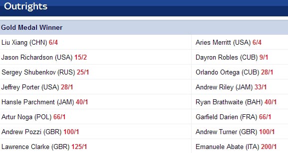 上周在鉆石聯賽倫敦站中,劉翔決賽退賽,但這并沒有影響到博彩公司對他的青睞,他以6/4的賠率高居榜首。當然這次劉翔不是獨居榜首,美國人梅里特的奪冠賠率同樣為6/4。