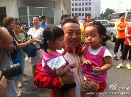 今天早上不到九點,天壇公寓大門口就變得人頭攢動起來,前來為國乒將士送行的媒體、球迷和各界朋友絡繹不絕。在送行隊伍里,最特別的兩位“嘉賓”當屬劉國梁教練的雙胞胎千金,兩個小家伙還很年幼,但好像已經懵懂知道些事情了,也許是了解到將會和爸爸分別多日,她們一直纏著劉指導不放,而當劉指導坐上汽車和她們飛吻告別時,孩子立刻哇哇大哭起來。