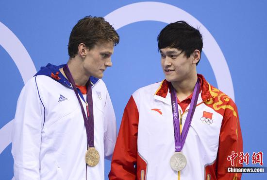 當?shù)貢r間7月30日,倫敦奧運會男子200米自由泳決賽孫楊、樸泰桓并列亞軍。記者 廖攀 攝