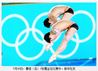 [提要] 北京時(shí)間7月30日23時(shí),中國(guó)跳水隊(duì)兩名不足20歲、首次征戰(zhàn)奧運(yùn)會(huì)的小將曹緣/張雁全,用6個(gè)無(wú)懈可擊的動(dòng)作,征服了現(xiàn)場(chǎng)所有的裁判和觀眾,以總成績(jī)486.78分獲得金牌。首次參加奧運(yùn)會(huì),曹緣/張雁全一點(diǎn)也不怯場(chǎng),從規(guī)定動(dòng)作到自選動(dòng)作都完成得十分穩(wěn)定。