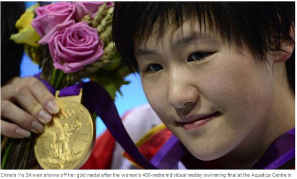 [提要] 北京時間7月31日消息,據BBC報道,在當地時間31日舉行的新聞發布會上,英國奧委會主席莫伊尼漢宣布,葉詩文已經通過了興奮劑檢查,葉詩文是“清白”的,她的能力是值得認可的。如果獲得了奧運金牌,或者創造了個人最佳成績,伍德都會因此得到獎金,葉詩文在2011年世錦賽200米混合泳奪冠,伍德就領到了獎金。