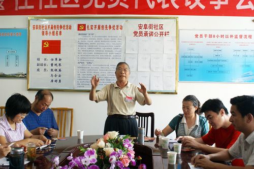 在街道學習實踐科學發展觀活動中,老謝再一次沖在了宣傳的最前沿。他向黨支部和老黨員們表示,不怕苦、不怕累、不怕任務繁重,一定要當好宣傳聯絡員,為搞好社區的學習實踐科學發展觀活動做出積極的貢獻。宣傳中,謝立亭把堅持3年的“自我教育節”拿出來,與全體黨員共勉。他說,我每年7月1日至7月7日,也就是黨的節日后的7天,定為自我教育節,無論多晚,都要重溫入黨誓詞,學習黨的章程。