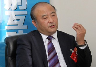 參加省十一屆人大五次會議的省人大代表、萊蕪市委副書記、市長楊宜新在接受大眾網...