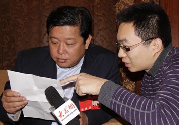 在山東省第十一屆人大五次會議上,省人大代表、臨沂市委副書記、市長張務鋒接受大...