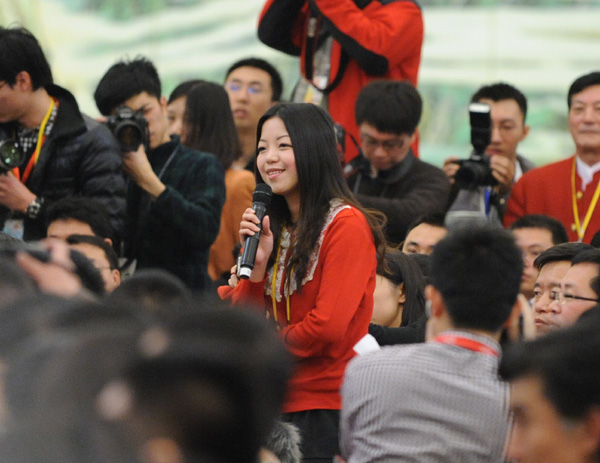 [提要] 2012年3月4日上午11時,十一屆全國人大五次會議在人民大會堂三樓金色大廳舉行新聞發布會,由大會發言人李肇星就會議議程和人大工作相關的問題回答中外記者的提問。圖為香港大公報記者提問