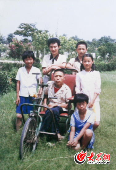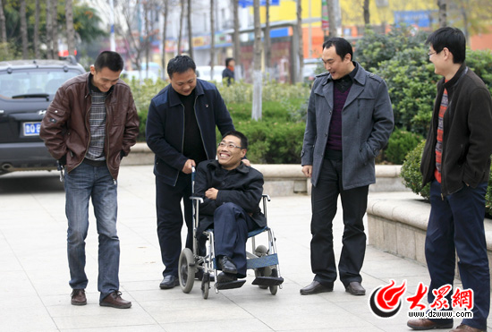 [提要] 坐在輪椅上的是39歲的徐恒強,他7個月大時患上了脊髓灰質炎而導致終生殘疾,走路只能靠扶著板凳一步一步地挪動。27年前,上三年級的他遇到了生命中的“貴人”——馬軍波、任子超、馬學成,用小推車推其上學下學……無論刮風下雨,無論酷暑嚴冬,總是他們,總在堅持。