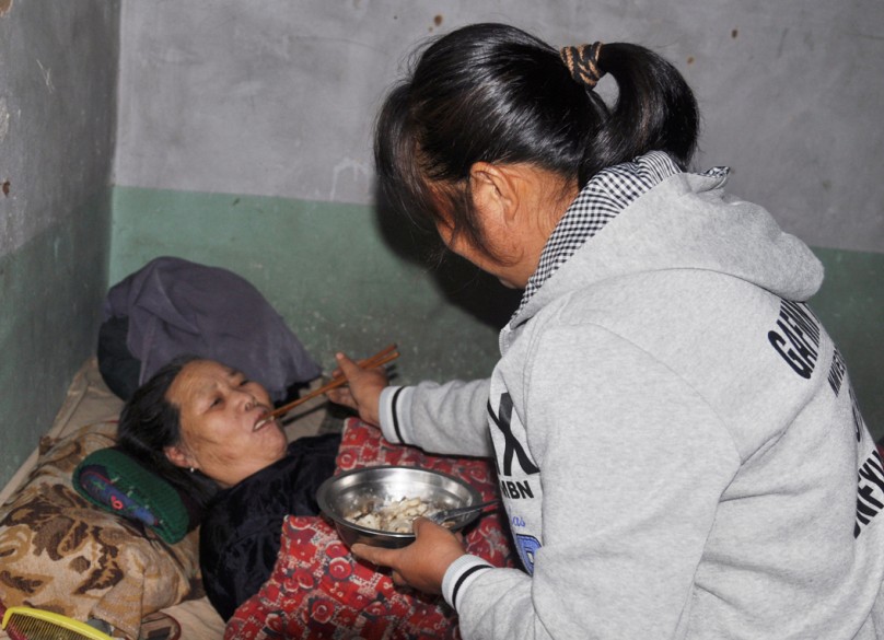 現(xiàn)年40歲的侯家臺村民梁麗紅,十年如一日照顧常年臥病在床的婆婆。厄運一次又一次降臨在她身上,卻沒有擊倒她的意志。