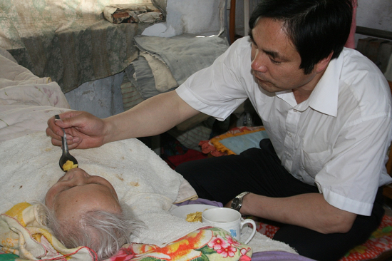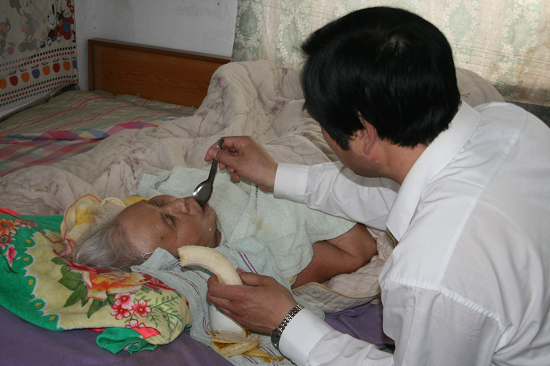 就這樣過了幾年,繼母精神狀態好了很多,身體也更加健康。好景不長,不幸又一次降臨在繼母頭上。2008年7月3日,繼母突發腦干出血,李局長租用縣醫院120去濟南市中心醫院神經外科進行緊急開顱手術,在醫院期間醫生3次下達病危通知書。周圍人都勸他放棄治療,說:“親生母親的責任也盡了,何況是只與你父親生活僅一個月的繼母啊!”。這時,他說:“母親那有親后之分,何況我與繼母已經共同生活了8年多,早已把她當成我的親媽,她已經成為我們全家不可或缺的一份子,那怕有一絲希望我也要試試。”在我的再三堅持下,把繼母轉院到濟南省立醫院,請專家就診,請名醫開藥,為了繼母他竭盡所能。終于孝感動天,在濟南經過13天救治后,上天被他的孝心感動了,,死神沒把他的繼母帶走,繼母奇跡般的轉危為安并轉入商河縣人民醫院進行后期治療,共計花費醫療費用達6.8萬,但卻遺留偏癱后遺癥,導致左側眼睛,胳膊,腿失去功能,長期癱瘓在床,生活無法自理。這時候又有很多人勸他把繼母送走或放棄,但他想起繼母在我家生活的快樂情景,現在又病臥在床,照顧她義不容辭,便又擔起了這個重擔。
