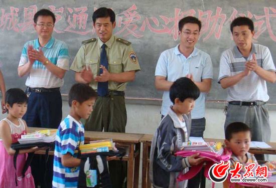 2010年5月19日,鄄城縣交通運(yùn)輸局維修科第一次結(jié)對(duì)助學(xué)捐贈(zèng)儀式在左營(yíng)鄉(xiāng)中心校舉行,來(lái)自全鄉(xiāng)多處小學(xué)的孫龍、劉泰等15名貧困學(xué)生分別收到了書(shū)包、鋼筆、文具盒和筆記本等學(xué)習(xí)用品。2011年1月18日上午,張培軍等9名同志又到舊城鎮(zhèn)走訪慰問(wèn)貧困學(xué)生,為周西棟等3名貧困學(xué)生家庭分別送去了兩袋面粉、兩桶食用油和兩箱方便面。他們的愛(ài)心助學(xué)行動(dòng),讓三個(gè)貧困家庭在嚴(yán)寒的冬日里,感受到了濃濃的暖意。他們這次救助的周西棟、申惠丹和王震三名貧困學(xué)生,都是單親家庭,生活十分拮據(jù),尤其是周西棟同學(xué),父親癱瘓?jiān)诖玻畈荒茏岳怼V芪鳁澯盟怯仔〉碾p肩撐起了整個(gè)家庭的重?fù)?dān),不僅要自己動(dòng)手做飯、洗衣,而且還要照顧重病父親的吃、喝、拉、撒、睡。但是周西棟同學(xué)卻沒(méi)有被沉重的生活負(fù)擔(dān)所壓倒,學(xué)習(xí)非常刻苦,成績(jī)十分優(yōu)異。當(dāng)看到張培軍等9名同志送來(lái)的面粉、食用油和方便面等生活必需品時(shí),周西棟父親這位飽受生活磨難的中年漢子也禁不住潸然淚下,泣不成聲。看到三位孩子的不幸遭遇,張培軍等人一直表示,他們將把這種愛(ài)心活動(dòng)長(zhǎng)期開(kāi)展下去,決心盡自己的綿薄之力,讓更多的孩子享受到社會(huì)大家庭的溫暖,順利完成學(xué)業(yè),將來(lái)成為國(guó)家和社會(huì)的棟梁之才。