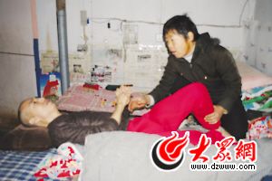 2006年的這一天對于陽信縣流坡塢鎮(zhèn)西茍村村民茍振水一家來說是最黑暗的一天。準(zhǔn)備蓋新房的茍振水騎著摩托車到鎮(zhèn)農(nóng)信社取錢,路上不慎發(fā)生事故,導(dǎo)致頭部受到重創(chuàng),雖搶救及時,但因傷勢較重,成為植物人,生命難保!爱(dāng)時,俺就覺得天塌下來了!”劉春梅說。幸虧好心人發(fā)現(xiàn)茍振水出事后,撥打了120,茍振水被及時送到了縣人民醫(yī)院搶救,后又轉(zhuǎn)到濱州醫(yī)學(xué)院附屬醫(yī)院。盡管醫(yī)生盡了最大的努力,但是因腦細胞受損,茍振水深度昏迷了50多天,還是沒有醒來,臨床表現(xiàn)為對外界無認知能力、與外界無法溝通、無行動、日常生存所必須的作息(飲食、翻身、沐浴、更衣、排泄物處理等)完全由旁人照料?粗羧丈埢罨⒌恼煞,如今沒有任何感覺、一動不動地躺在病床上,劉春梅的心,碎了!但是當(dāng)醫(yī)院表示已無能為力時,劉春梅這位樸實而堅強的農(nóng)村婦女沒有放棄。當(dāng)時,已花掉5萬多元錢的劉春梅實在沒有能力讓茍振水繼續(xù)住在醫(yī)院里了,不得不把丈夫接到了家里自己照料。