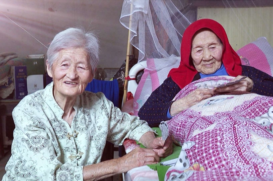 “在家的話俺倆就打打牌,沒事給她翻翻身、按按摩,玩夠了就推著她去外邊溜溜、曬曬太陽。和老人在一起,覺著有老人領(lǐng)著,在一起還怪好嘞,有個老人有說話的。”17年無微不至的細(xì)心照料,讓已經(jīng)103歲的婆婆王紀(jì)榮老人看上去依然精氣十足。