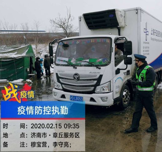 大年初一,本該舉家團圓歡度節日他第一個沖到了外方輸入防疫一線——濟青高速曹范服務區,惡劣天氣也像疫情一樣,不期而至。凜冽的北風夾著雪花,站在路口的他,手腳耳朵很快便失去了知覺。在刺骨的寒風中,他逐一登記來往車輛人員的信息,測量體溫,一待就是一宿。在這12個小時的夜班里,餓了湊合吃點面包,渴了他就喝幾口冰冷的礦泉水。惡劣的工作環境、繁重的工作強度,他沒有任何怨言。他的心里只有一個念頭,就是一定要把工作干好,堅決防止病疫輸入。