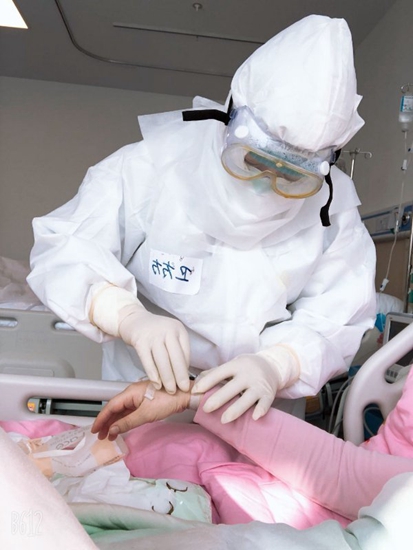 在湖北,黃岡的疫情僅次于武漢,形勢的嚴峻程度可想而知。衛方方被分配在大別山區域醫療中心的重癥護理組,作戰任務是對已確診為新冠肺炎的危重患者進行護理,相當于在前沿陣地直接與敵人面對面廝殺。她每天必須與已確診的高危患者密切接觸,做著呼吸道插管、氣管切開、吸痰、穿刺、輸液、協助進食、口護、消毒、清理大小便、翻身等繁重工作,其辛苦和危險程度是常人難以想象的。