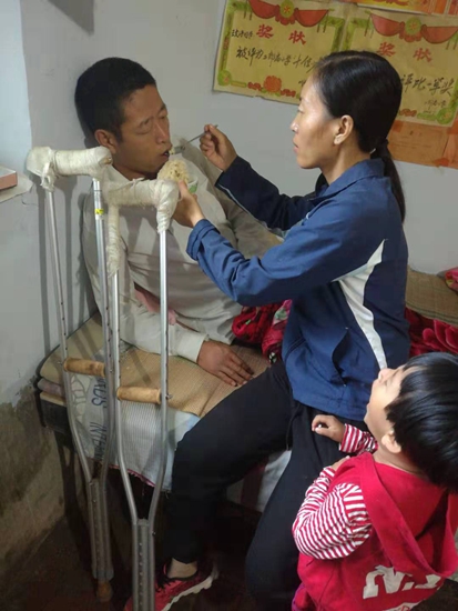 命運似乎并不眷顧這個一直勤勤懇懇的樸實農村家庭。2014年冬天,婆婆劉世娥手腕粉碎性骨折,張秀敏細心照顧,直到婆婆康復。2016年春,原本作為家庭重要經濟支柱的公爹王兆科檢查出來胃癌晚期,對這個本就拮據的家庭更是不堪重負。2018年冬天,公爹胃癌轉移到肝臟,膽管癌,不得已只能再次進行微創手術,花費巨大,生病的公婆,還在上學的孩子,癱瘓的丈夫,這些苦難似乎能輕而易舉的擊垮任何一個成年人,可它們并沒有擊垮她——張秀敏。