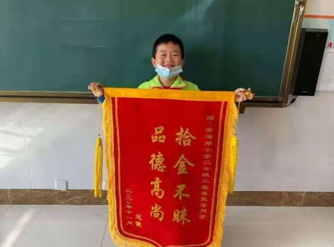 2020年11月12日放學(xué)后的傍晚,苗宸浩和小伙伴們在小區(qū)廣場玩耍。在彎腰撿拾自己掉落的玩具時他忽然發(fā)現(xiàn)廣場一角的地上有個微微發(fā)亮的東西,他走近一看,竟然是個戒指,上面還鑲嵌著一顆漂亮的大鉆石。對于一個八歲的孩子來說,苗宸浩無法判斷這個戒指有多值錢。但他見過媽媽的戒指,這個戒指上的鉆石比媽媽的還要大,肯定價值不菲。丟了這么珍貴的物品,失主肯定很著急,苗宸浩心里想。于是他留在原地等待失主,但等了好久也沒有人來尋找。此時天色已晚,苗宸浩決定將戒指交給小區(qū)門衛(wèi)保安爺爺保管。幾天后,失主在物業(yè)微信群里看到了失物招領(lǐng)的通知,很快領(lǐng)回了丟失的戒指。失主說發(fā)現(xiàn)戒指丟失后遍尋不到一度以為不可能找回來了,真沒想到還能失而復(fù)得!非常感謝大家特別是那位小學(xué)生小朋友,專門制作錦旗送到了學(xué)校,還夸贊他是個拾金不昧,品德高尚的好少年!