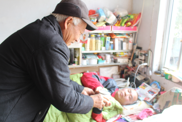 鄭京富的弟弟鄭京友,今年65歲,20多歲時(shí)因?yàn)榛忌蠂?yán)重的風(fēng)濕性關(guān)節(jié)炎而導(dǎo)致癱瘓,常年臥床不起。鄭京友年輕時(shí)是個(gè)帥小伙,不僅有工作,而且生病前已經(jīng)定了親事,但本該幸福的人生軌跡卻因?yàn)橐粓?chǎng)突如其來(lái)的大病而徹底改變。剛剛患病的前幾年,鄭京富帶著弟弟把昌樂(lè)、濰坊的醫(yī)院都跑遍了,但效果甚微,康復(fù)的希望在尋醫(yī)求藥的過(guò)程中一點(diǎn)點(diǎn)破滅,鄭京友也逐漸對(duì)生活失去了信心。得知自己的病情后,為了不耽誤人家姑娘,鄭京友執(zhí)意和要過(guò)門(mén)的媳婦吹了。想到漫長(zhǎng)的后半生要躺在床上度過(guò),他痛不欲生,精神幾度崩潰。為了讓鄭京友卸下思想包袱,勇敢地生活下去,在那段難熬的日子里,不善言辭的鄭京富選擇日夜陪伴著弟弟,用最樸實(shí)的兄弟情和愛(ài),溫暖和支撐著弟弟堅(jiān)強(qiáng)、樂(lè)觀(guān)地去面對(duì),重新燃起他對(duì)生活的希望。鄭京友生病后,為了更好地照顧他,鄭京富和妻子王秀英兩人做了明確分工:由妻子王秀英負(fù)責(zé)弟弟的衣食起居,做飯、送飯、洗衣服;鄭京富自己則成了弟弟的貼身“侍衛(wèi)”,無(wú)論走到哪里都帶著他,給他端屎端尿、擦洗身體。這一照顧,就是四十多年。提起過(guò)去的四十多年,鄭京富說(shuō)苦點(diǎn)累點(diǎn)都不算什么,最難的日子已經(jīng)咬牙挺過(guò)來(lái)了,現(xiàn)在他最擔(dān)心的是隨著年齡增長(zhǎng),自己和老伴的身體都大不如前,眼睛不好使了,腿腳也不靈便了,以后照顧不了弟弟了怎么辦?有年冬天,鄭京友突然發(fā)低燒,吃了幾天藥也不管用。鄭京富想帶弟弟去醫(yī)院,但由于自己年紀(jì)大了力氣不夠,根本背不動(dòng)。無(wú)奈之下,鄭京富撥打了120。住院期間,鄭京富夫妻二人堅(jiān)持每天去醫(yī)院照顧弟弟,醫(yī)療費(fèi)都是鄭京富的兩個(gè)兒子和親戚湊的。“當(dāng)時(shí)住院的錢(qián)是我兩個(gè)兒子和親戚湊的,孩子們也都有自己的家庭,雖然有心照顧叔叔,但使不上力!编嵕└徽f(shuō)。