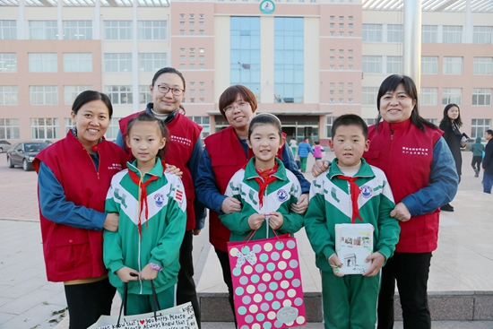 “付珍愛心媽媽團隊”赴中新路小學開展“圓夢微心愿”活動(左一付珍)