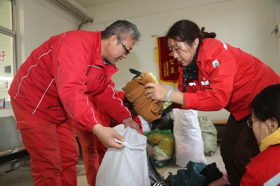 趙維國(guó)和他的團(tuán)隊(duì)在收集整理衣物