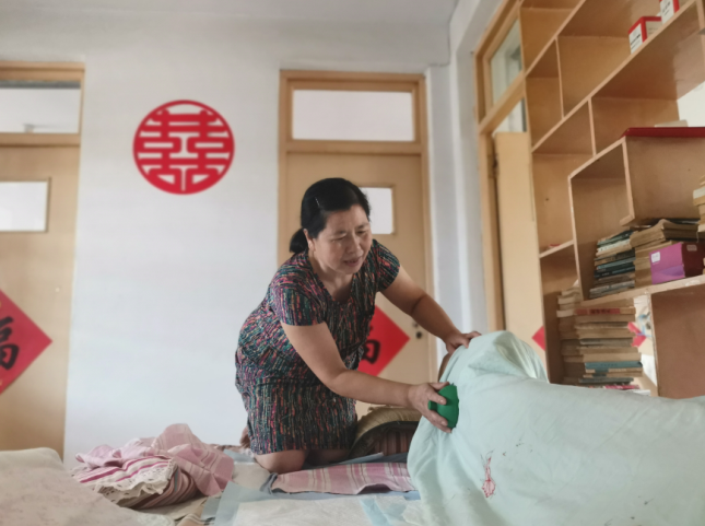丈夫癱瘓在床需要人照顧,兒子還在上大學,生活的重擔全部壓到了劉玉芝肩上。“一直以來,丈夫就是我們家里的頂梁柱,他突然倒下了,我心里就跟天塌了一樣。最初我也是無法接受這個現實,但想到丈夫倒下了,如果我再倒下,這個家就完了。為了這個家,為了丈夫和兒子,再重的擔子,我都要擔起來。”為了給丈夫治病、供兒子讀書,劉玉芝眼淚往肚里流,沒日沒夜操勞,一邊打零工,一邊抽空照顧丈夫,期間還要自學中醫按摩知識,一刻不停。