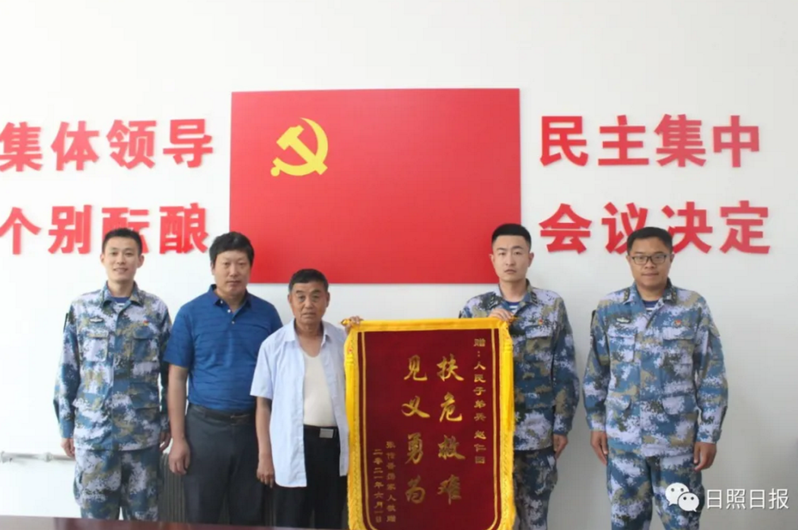 6月7日,兩位日照市民來到駐青島海軍某部隊,他們是被救老人張傳香的家人。奔波百公里,只為代表家人感謝救命恩人,當面向趙仁田說一聲“謝謝”。