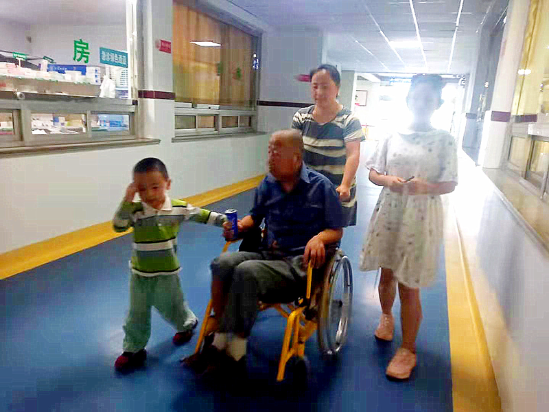 石艷紅的公公今年77歲,患有腦血栓,一開始還能拄著拐杖行走,后來隨著病情加重,直接癱瘓臥床,生活完全不能自理。屋漏偏逢連陰雨,之后公公又被查出患上了尿毒癥。面對老人的情況,為了能更好照顧生活不能自理的公公,石艷紅毅然選擇放棄城里的生活,跟隨丈夫回到老家新戶鎮老鴉村中居住。此時的她已身懷六甲,而大女兒也只有剛剛6歲。