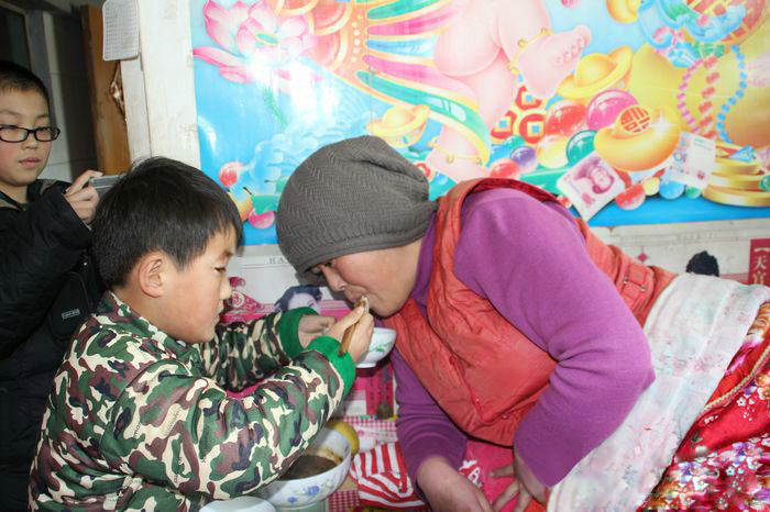 2010年,母親查出癌癥后,他就成了家里的“頂梁柱”。現在,他每天早上5點半他就得起床,做好早飯后先端給媽媽,自己再吃。等把家里安頓好后,他才放心地去上學。每天放學后,他便急匆匆往家趕,因為家里有他牽掛的媽媽,他要回去洗衣服、做飯、打掃衛生、給媽媽按摩。