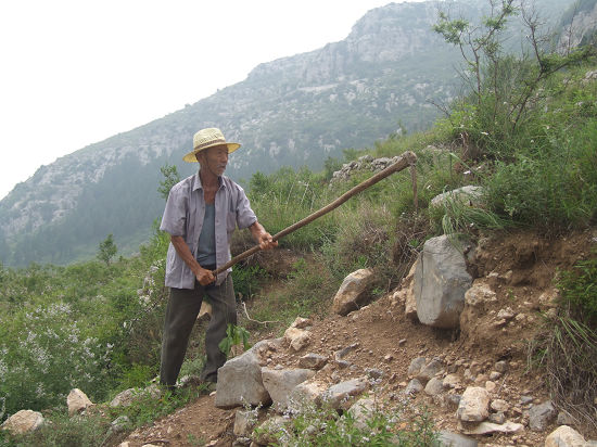 2008年的陰歷九月初九開始修路,那一年,他70歲,正好也是重陽節。“因為沒有正兒八經的山路,我們這些村里人還能自己摸索著爬到山頂,外地人來爬山很容易迷路。”馬道沁說,一到夏天,山上雜草密布,更容易迷路,一到下雨天,根本就沒法進山了。自那以后,他就開始琢磨著要修條山路,讓登山的人爬山更方便。