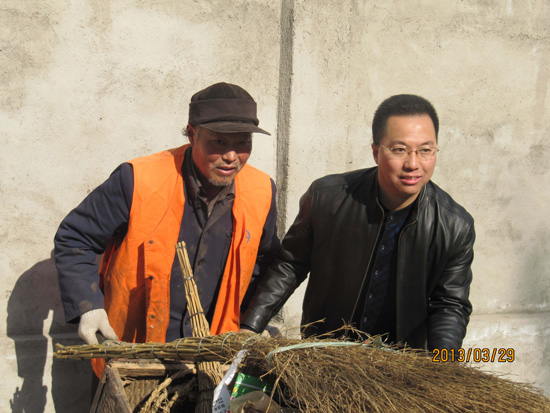 有一個60歲左右負責小區東側衛生的大叔,身體還算硬朗,他總想多承包幾塊地方,多干點,以便能多掙點錢。在他負責的區域的邊上,有一個高出地面一米半的平臺,多年來上面一直堆滿了石塊、樹枝、碎玻璃等廢棄物,嚴重影響環境。2012年秋天,張月濤跟他商議,借用他的小推車和大掃帚,與他一起,用了一個多小時的時間,徹底將此清理干凈。自此,他也算認識了這位身體健壯、勤快能干的大叔,F在,每天早晚遇見他,彼此總是熱情招呼一下。